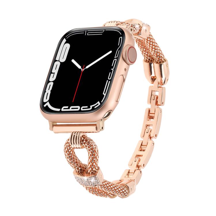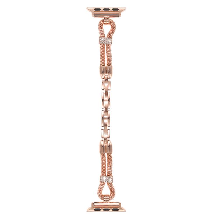 Correa de metal con diamantes y cadena de cobre para Apple Watch de 42 mm, 41 mm, 40 mm y 38 mm (oro rosa)