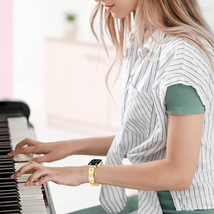 Correa de metal con diseño de pétalos de nieve para Apple Watch de 46 mm, 49 mm, 45 mm y 44 mm (dorada)