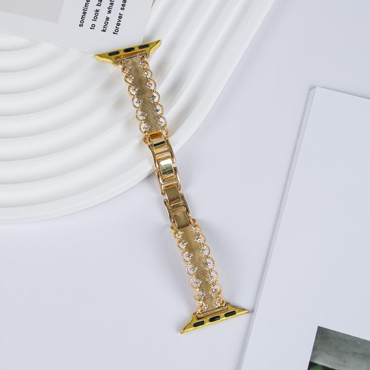 Correa de metal de aleación de diamante con borde de encaje para Apple Watch de 42 mm, 41 mm, 40 mm y 38 mm (dorada)