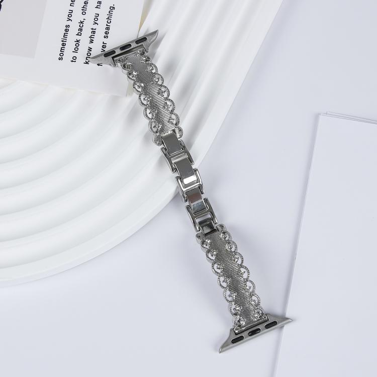 Correa de metal de aleación de diamante con bordes de encaje para Apple Watch de 46 mm, 49 mm, 45 mm y 44 mm (plateada)
