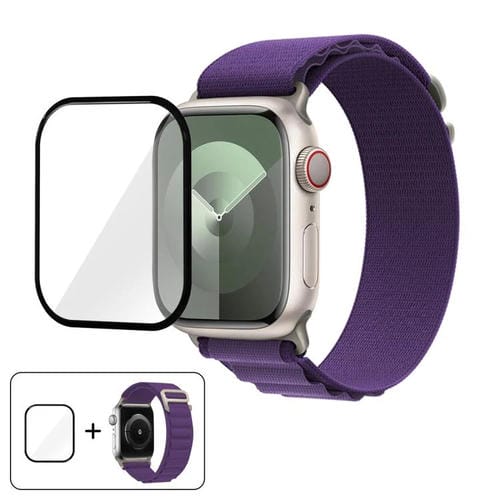 Correa de nailon con hebilla y película curva 3D para Apple Watch Series 38 mm (morado)