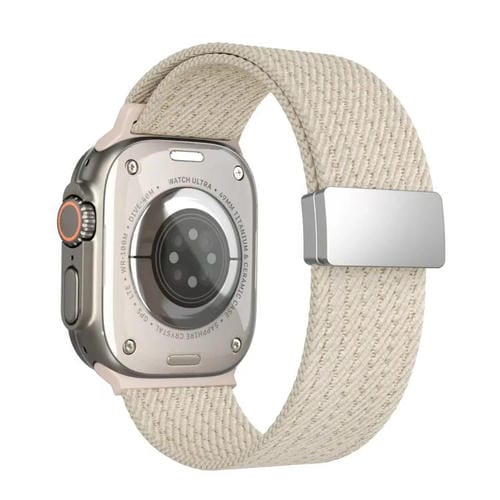 Correa de nailon elástica de cuatro hilos con cierre magnético de un solo color para Apple Watch de 46 mm, 49 mm, 45 mm y 44 mm (Starlight)