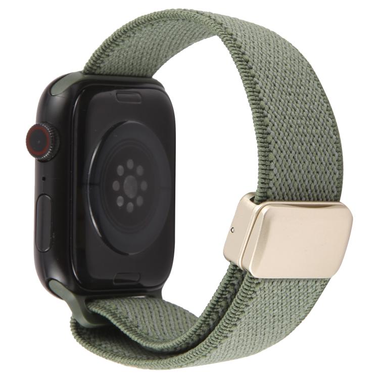 Correa de nailon elástico bicolor con hebilla magnética para Apple Watch de 42 mm, 41 mm, 40 mm y 38 mm (verde y gris).