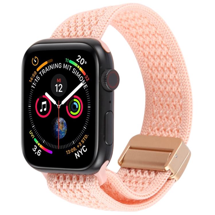 Correa de nailon transpirable con hebilla magnética para Apple Watch de 46 mm, 49 mm, 45 mm y 44 mm (color arena rosa oscuro).