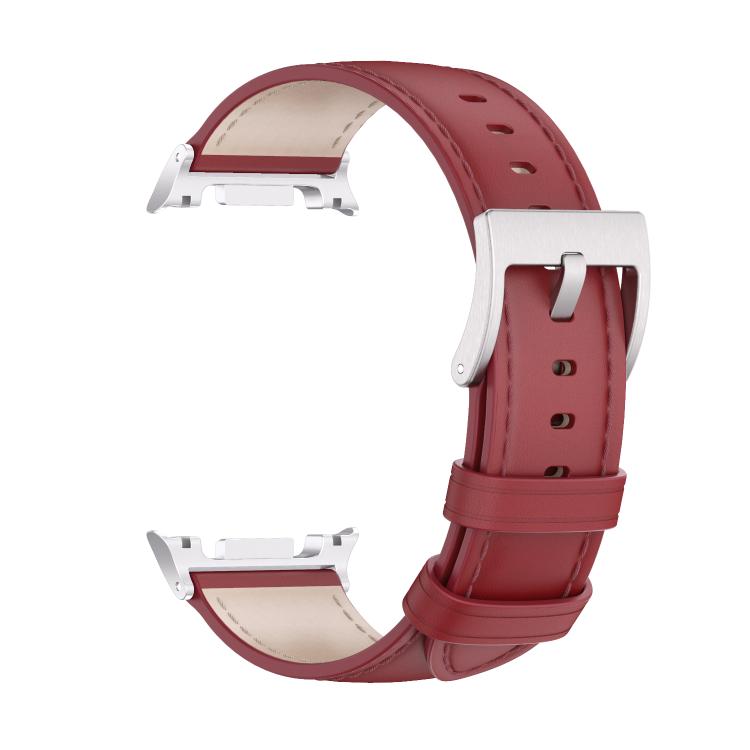 Correa de piel de vaca auténtica MIJOBS para Samsung Galaxy Watch8/Watch8 Classic (roja y plateada)