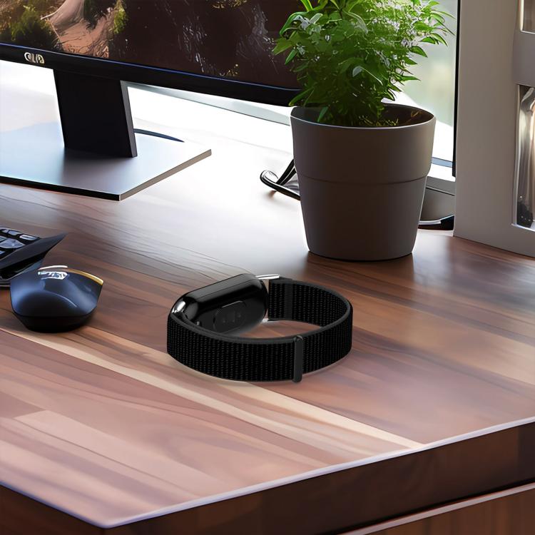 Correa de reloj con cierre de velcro de nailon y película curva 3D para Xiaomi Smart Band 9/9 NFC (negra)