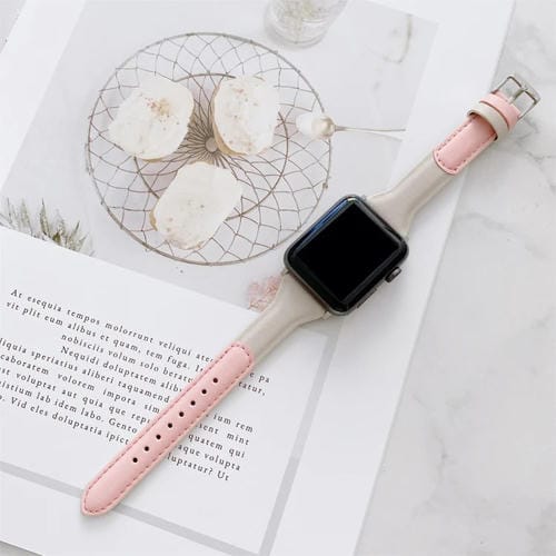 Correa de Reloj de Cuero para Apple Watch Series 8 y 7 41mm / SE 2, 6, 5, 4 40mm / 3, 2, 1 38mm (Rosa + Blanco)