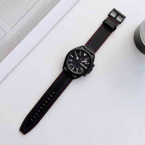 Correa de Reloj Cuero Costura Tricolor Universal 22mm (Negro)
