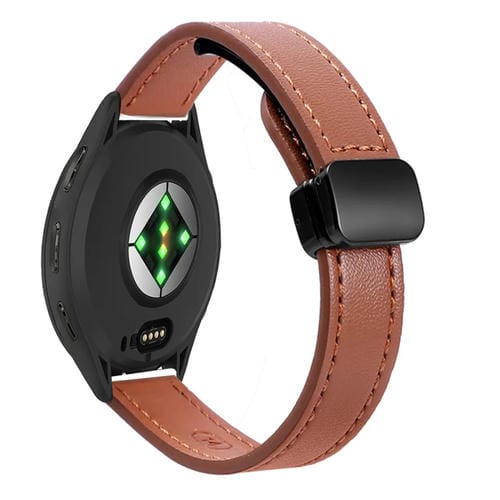 Correa de Reloj de Cuero Microfibra con Hebilla Magnética 18mm para Garmin Venu 3S (Marrón Moca)