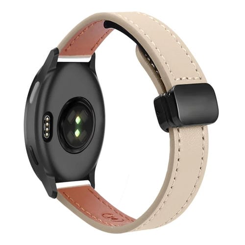 Correa de Reloj Cuero Microfibra 20mm con Hebilla Magnética para Garmin Active 5 (Albaricoque Crema)
