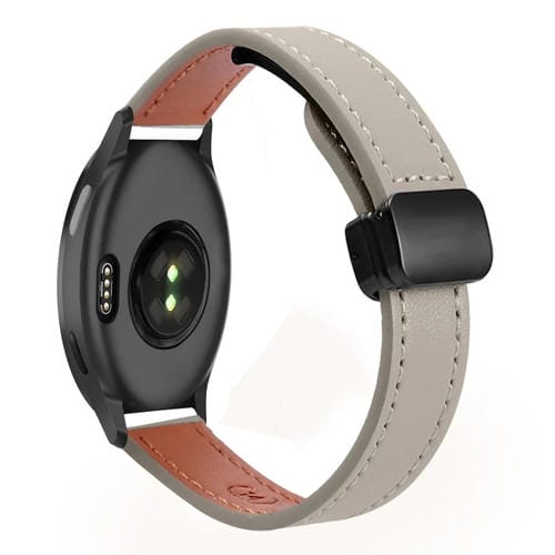 Correa de Reloj de Cuero Microfibra 20mm con Hebilla Magnética para Garmin Active 5 (Gris)