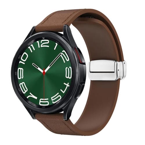 Correa de Reloj Cuero Silicona 20mm Hebilla Plateada Magnética (Marrón Oscuro)