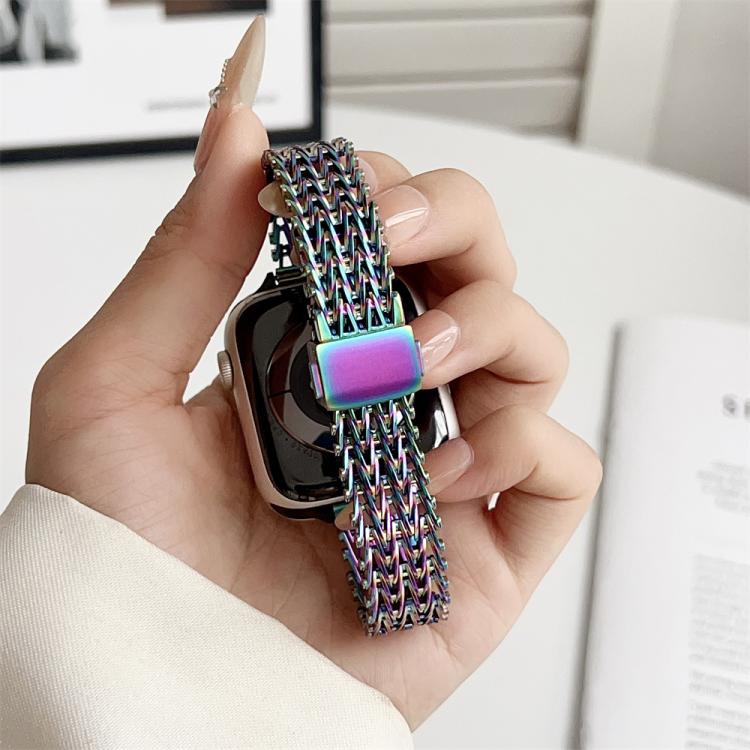 Correa de reloj de malla metálica de acero delgada con cierre magnético para Apple Watch de 42 mm / 41 mm / 40 mm / 38 mm (Colorida)
