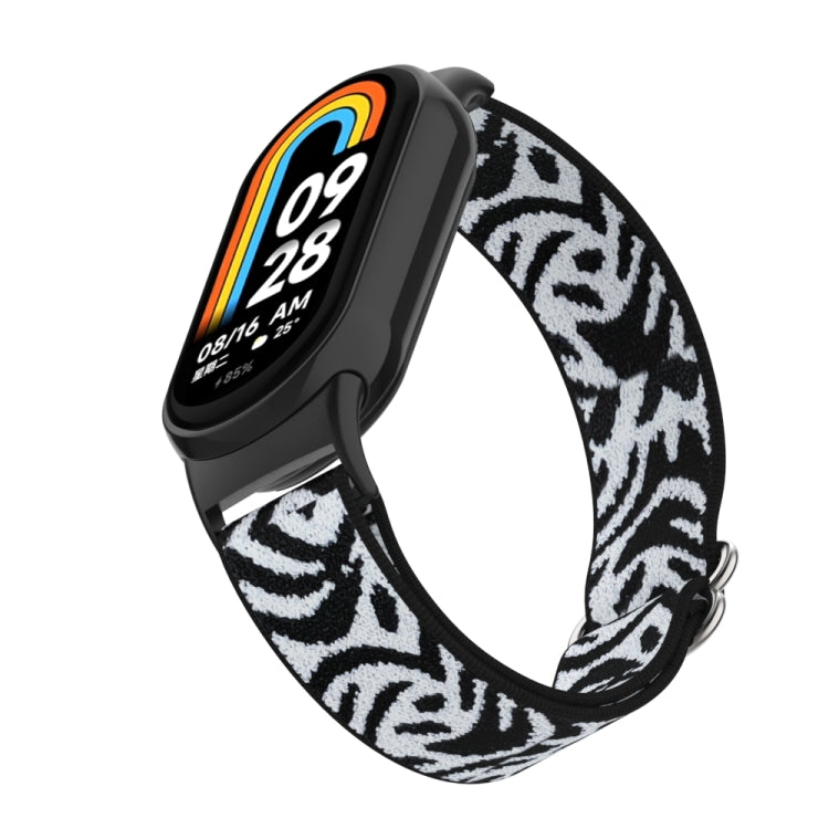 Correa de reloj de nailon elástica lisa con tapón de plástico para Xiaomi Smart Band 9/8 (Snow Leopard)