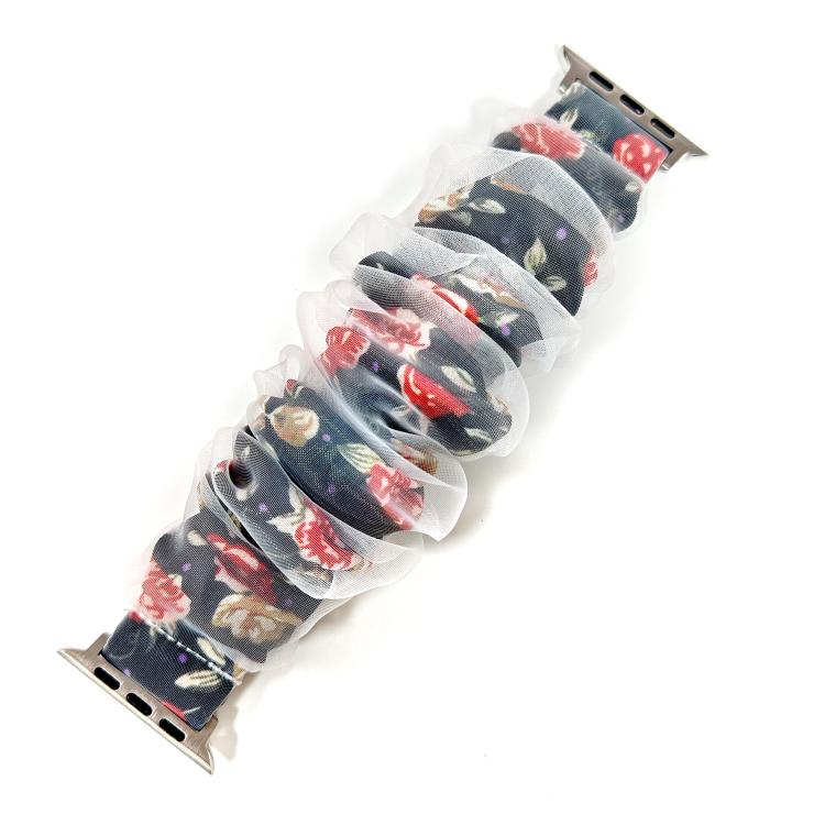 Correa de reloj de organza híbrida de poliéster de doble capa xDfind para Apple Watch 38/40/41/S10 de 42 mm (flor negra)