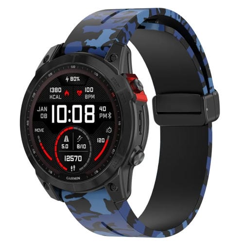Correa de Reloj de Silicona Garmin Fenix 7S con Hebilla Negra Plegable Magnética (Azul Camuflaje)