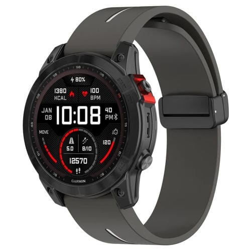 Correa de Reloj de Silicona Garmin Fenix 7 con Hebilla Negra Plegable Magnética (Gris y Blanco)