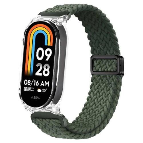 Correa de reloj elástica trenzada de nailon con hebilla magnética y marco de policarbonato transparente para Xiaomi Mi Band 6/5/4/3 (verde oliva)