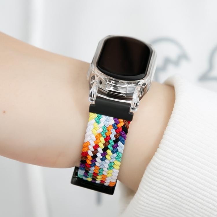 Correa de reloj elástica trenzada de nailon con hebilla magnética y marco de policarbonato transparente para Xiaomi Smart Band 9/8 (negro Starlight)