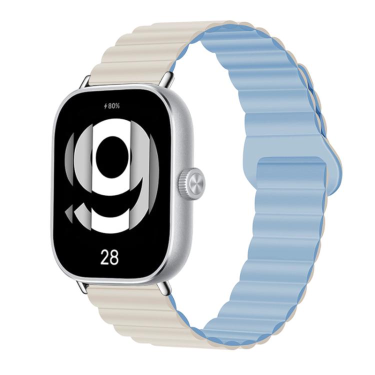 Correa de reloj magnética de silicona con hebilla invertida para VivoWatch GT / iQOO Watch GT (Blanco antiguo + Azul brumoso)