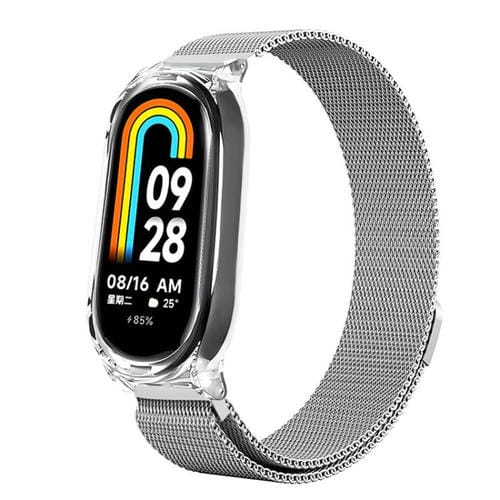 Correa de reloj magnética milanesa de metal con carcasa transparente para Xiaomi Mi Band 7 (plateada)