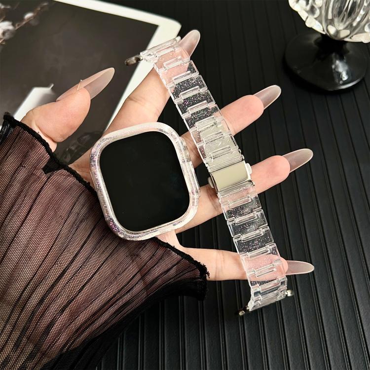 Correa de resina epoxi para Apple Watch de 40 mm/41 mm (color rosa cambiante) con carcasa de PC Chameleon