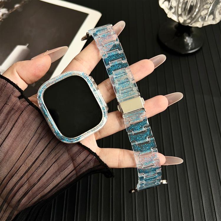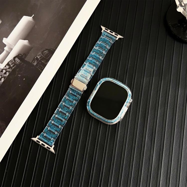Correa de resina epoxi para Apple Watch de 44 mm/45 mm (color azul cambiante) con carcasa de PC Chameleon