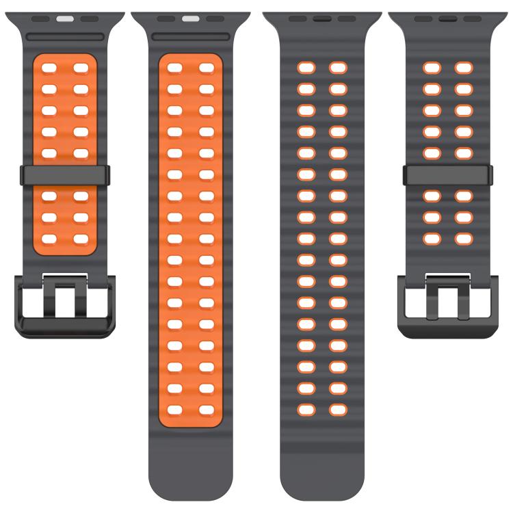 Correa de silicona bicolor con doble fila de agujeros para Apple Watch de 46 mm, 49 mm, 45 mm y 44 mm (gris y naranja)