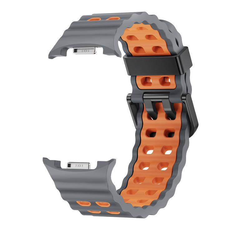 Correa de silicona bicolor con hebilla de liberación rápida para Samsung Galaxy Watch8/Watch8 Classic Ocean Style (gris espacial y naranja)