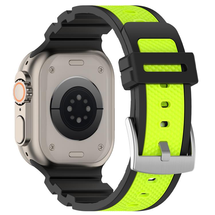 Correa de silicona bicolor con textura de diamante para Apple Watch de 46 mm, 49 mm, 45 mm y 44 mm (negro lima)