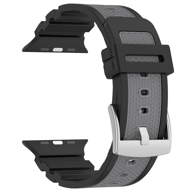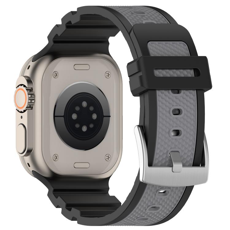 Correa de silicona bicolor con textura de diamante para Apple Watch de 46 mm, 49 mm, 45 mm y 44 mm (negro y gris)