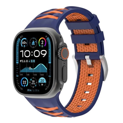 Correa de silicona bicolor con textura de neumático para Apple Watch de 42 mm, 41 mm, 40 mm y 38 mm (azul medianoche y naranja)