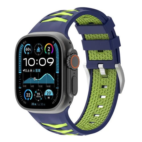 Correa de silicona bicolor con textura de neumático para Apple Watch de 42 mm, 41 mm, 40 mm y 38 mm (azul medianoche y verde lima)