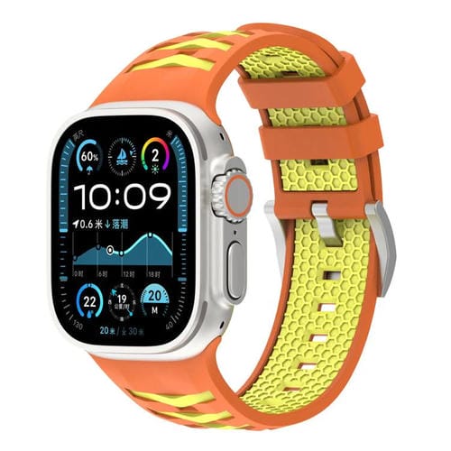 Correa de silicona bicolor con textura de neumático para Apple Watch de 42 mm, 41 mm, 40 mm y 38 mm (naranja y amarillo)