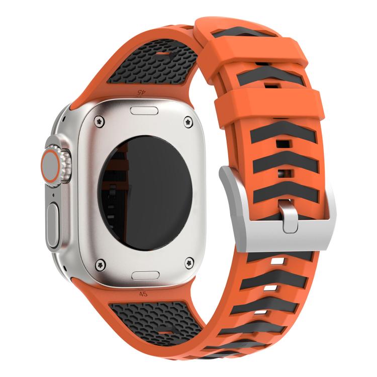 Correa de silicona bicolor con textura de neumático para Apple Watch de 42 mm, 41 mm, 40 mm y 38 mm (naranja y negro)