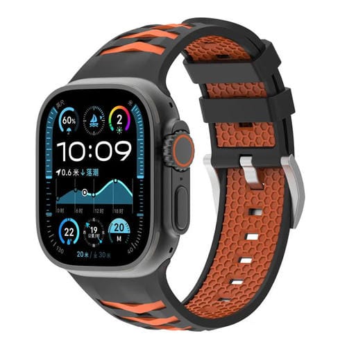 Correa de silicona bicolor con textura de neumático para Apple Watch de 42 mm, 41 mm, 40 mm y 38 mm (negro y naranja)