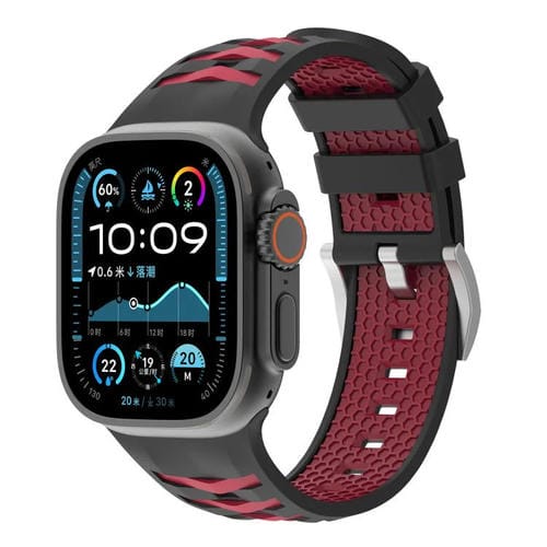 Correa de silicona bicolor con textura de neumático para Apple Watch de 46 mm, 49 mm, 45 mm y 44 mm (negro y rojo intenso)