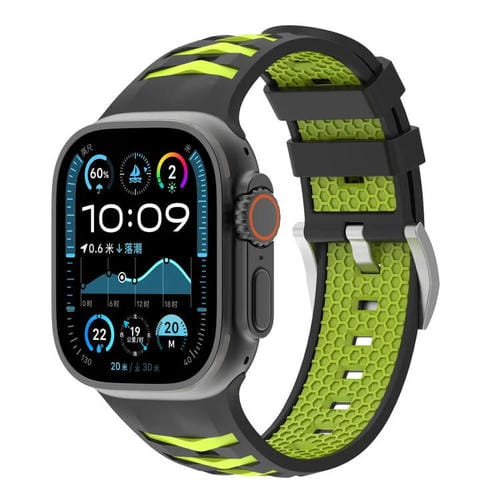 Correa de silicona bicolor con textura de neumático para Apple Watch de 46 mm, 49 mm, 45 mm y 44 mm (negro y verde lima)
