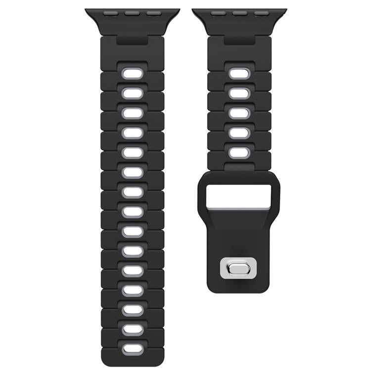 Correa de silicona bicolor para Apple Watch de 46 mm, 49 mm, 45 mm y 44 mm (negro y gris)