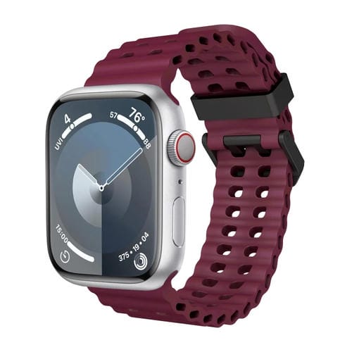 Correa de Silicona para Apple Watch Series 4 44mm con Dos Agujeros y Diseño de Océano (Rojo Vino)