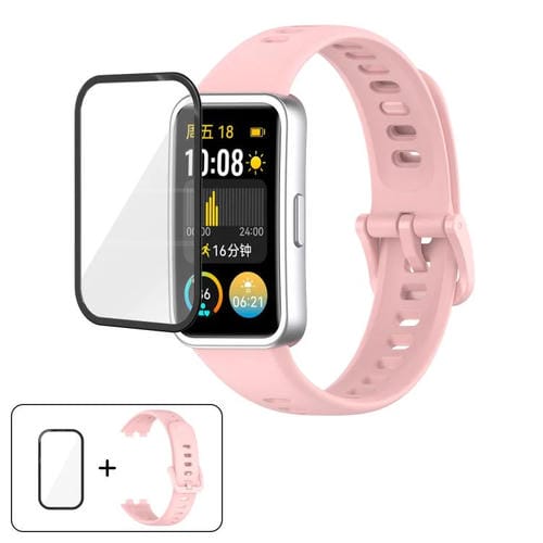 Correa de silicona con hebilla colorida y película curva 3D para Huawei Band 8/8 NFC (rosa)