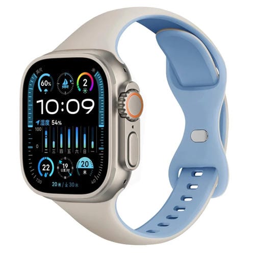 Correa de Silicona Apple Watch Ultra 49mm con Hebilla de Mariposa Dos Colores (Blanco, Azul Niebla)