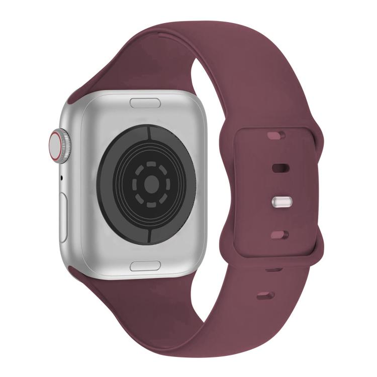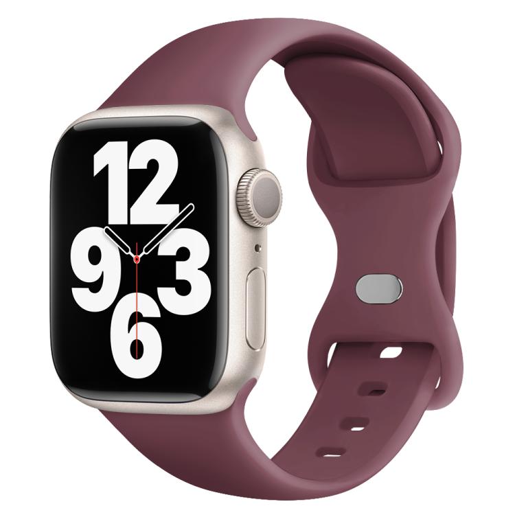 Correa de silicona con hebilla de mariposa para Apple Watch Series 10 de 42 mm con película curva 3D (morado ahumado)