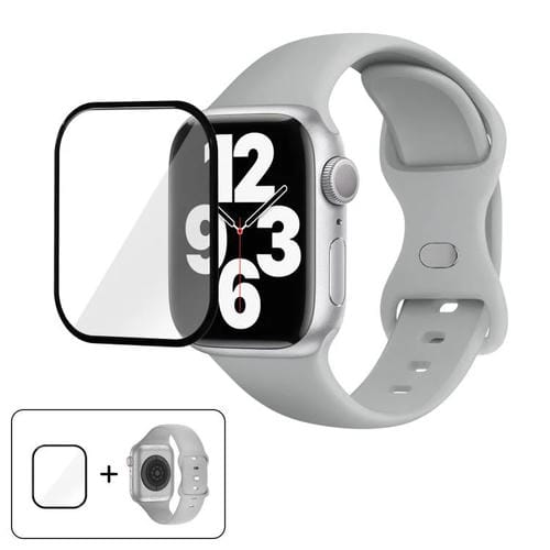 Correa de silicona con hebilla de mariposa para Apple Watch Series 45 mm con película curva 3D (gris nublado)