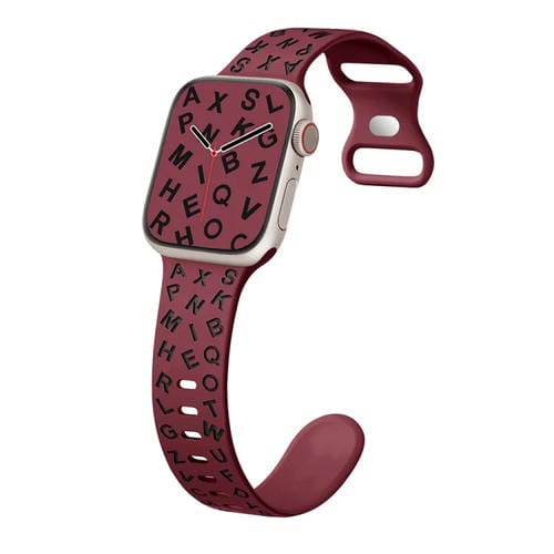 Correa de Silicona para Apple Watch Series 3 38mm con Hebilla de Mariposa y Letras (Vino Tinto y Negro)