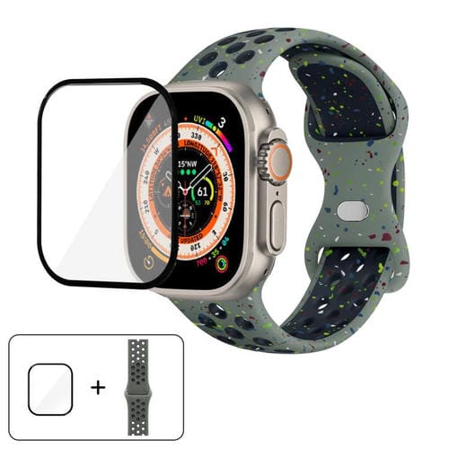 Correa de silicona con hebilla de mariposa y puntos de color para Apple Watch Ultra 2/1 de 49 mm con película curva 3D (verde militar caqui)