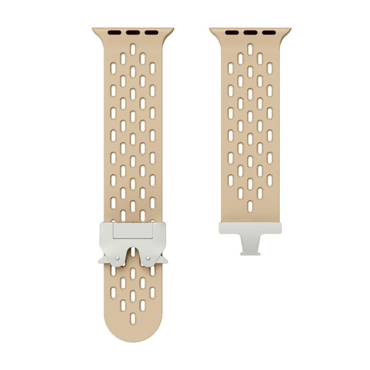 Correa de silicona con hebilla de paraguas plateada Kalebol Mesh para Apple Watch de 42 mm, 41 mm, 40 mm y 38 mm (té con leche)