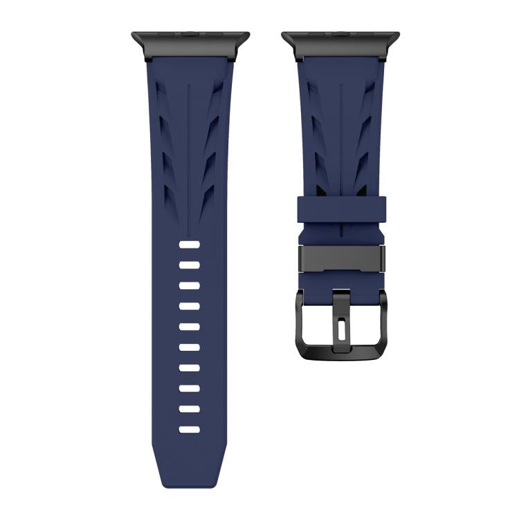Correa de silicona con hebilla de pasador negra para Apple Watch de 42 mm / 41 mm / 40 mm / 38 mm (azul medianoche)