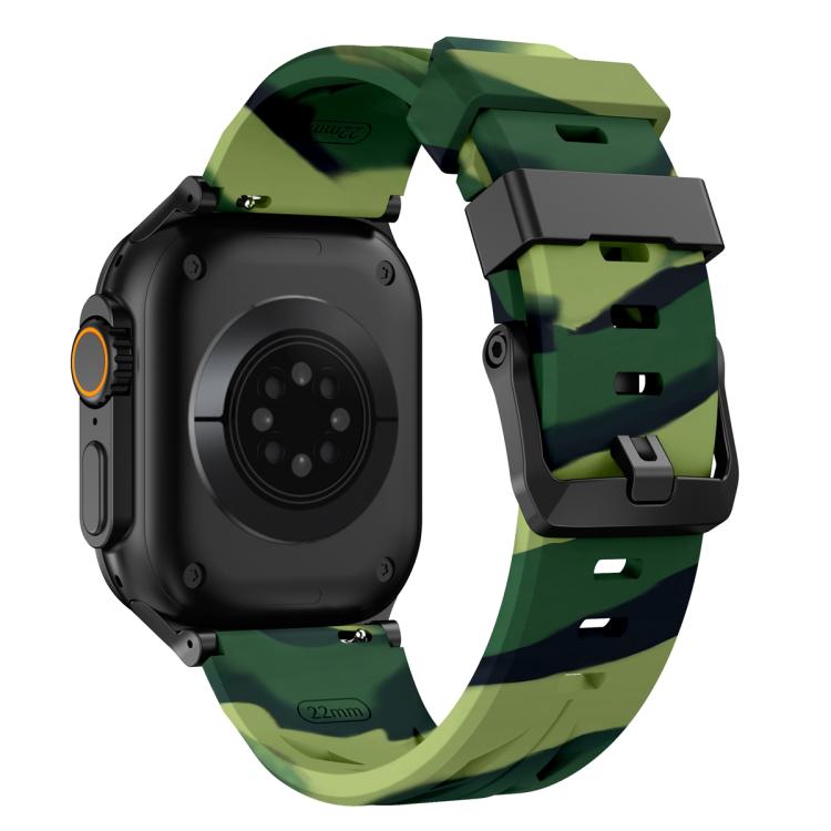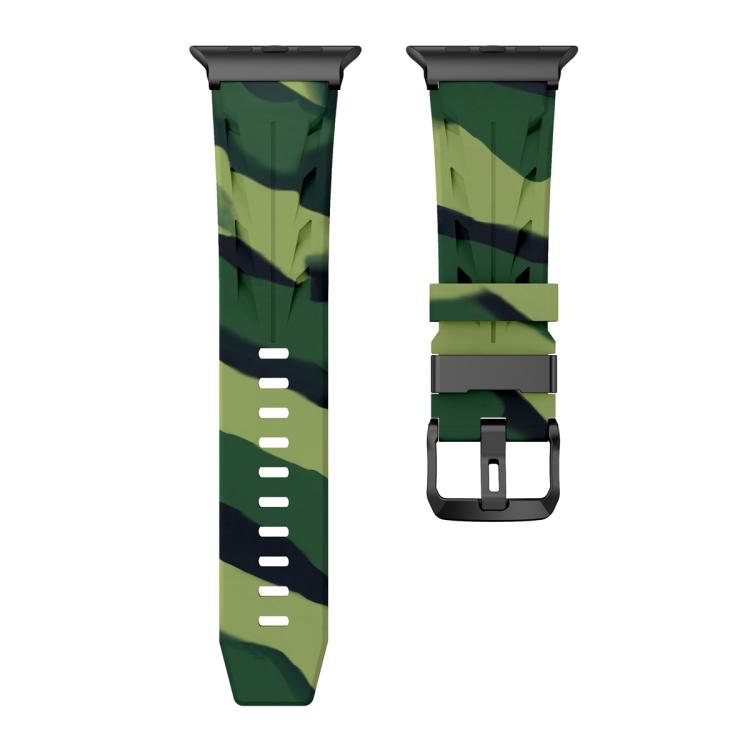 Correa de silicona con hebilla de pasador negra para Apple Watch de 46 mm / 49 mm / 45 mm / 44 mm (camuflaje verde militar)