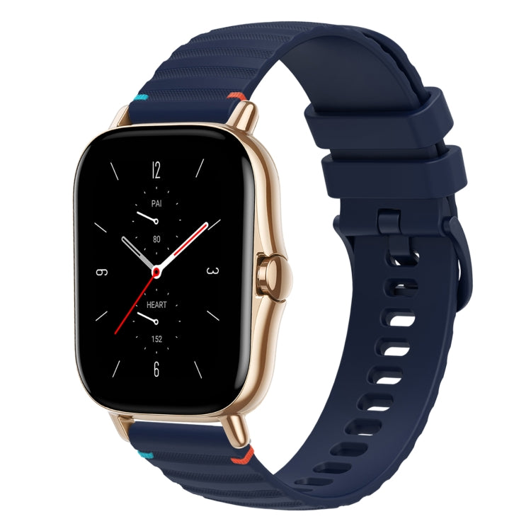 Correa de Silicona para Reloj Amazfit GTS 2 20mm con Puntadas Onduladas y Puntos (Azul Marino)